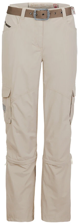 With the ladies leisure and hiking pants you are well equipped for all oudoor activities in the summer. Depending on the weather, the pants can be converted into shorts by zipping off the legs. Various closable pockets provide ample storage space. The zipper with autolock prevents unintentional opening of the zipper. The pants come with a casual belt with metal buckle.