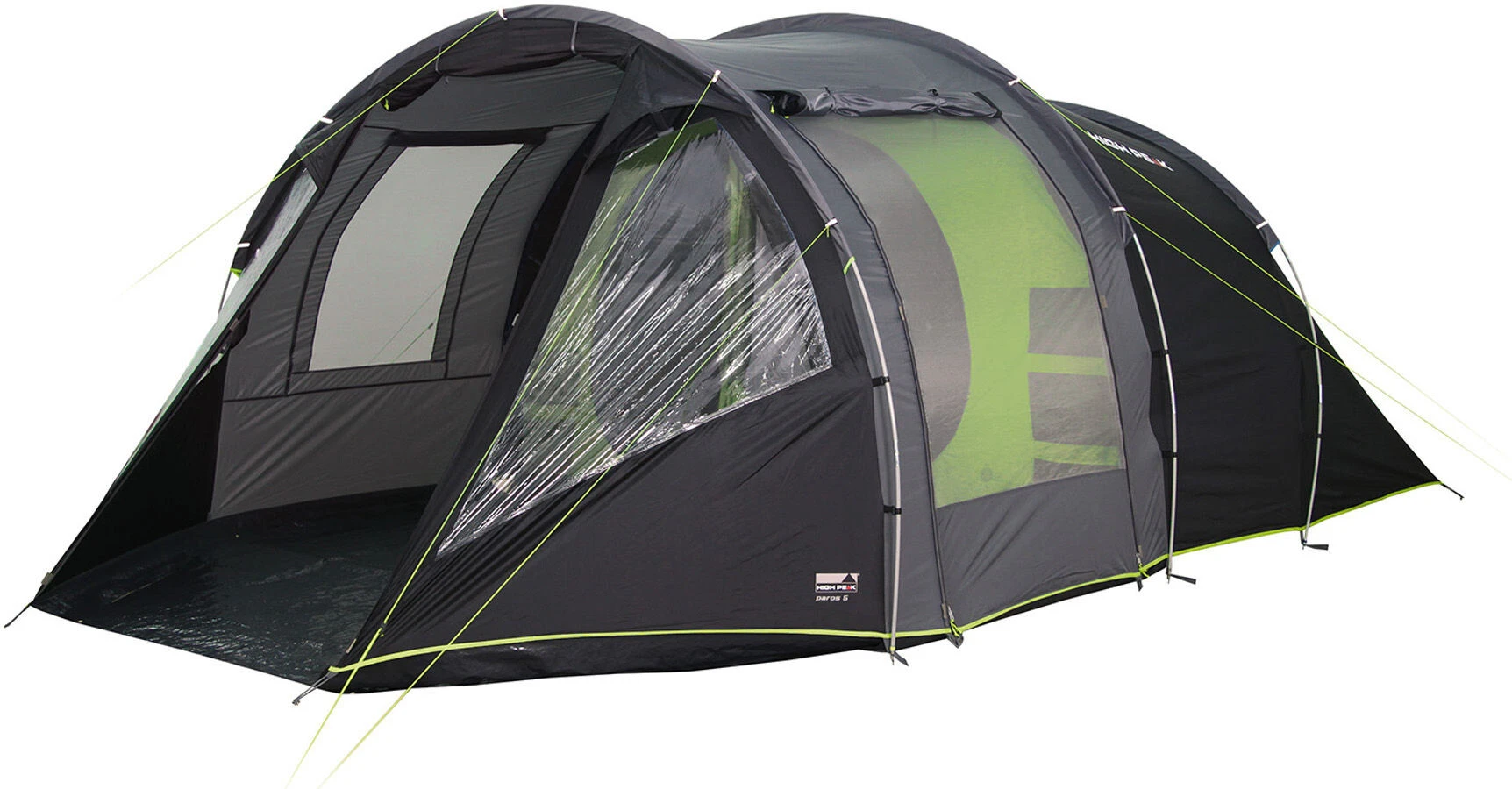 4-5 Person tunnel tent in stand up height with full featured porch -living area. Fixed ground sheet to inner tent and mudguard keeps dirt out of the living area. Clear panoramic view windows with curtains for privacy brighten up the interior. Dual side door with mesh door, large mesh side window and organizers makes the Pegasus 5 to a feature packed tent. Three permanent ventilation.