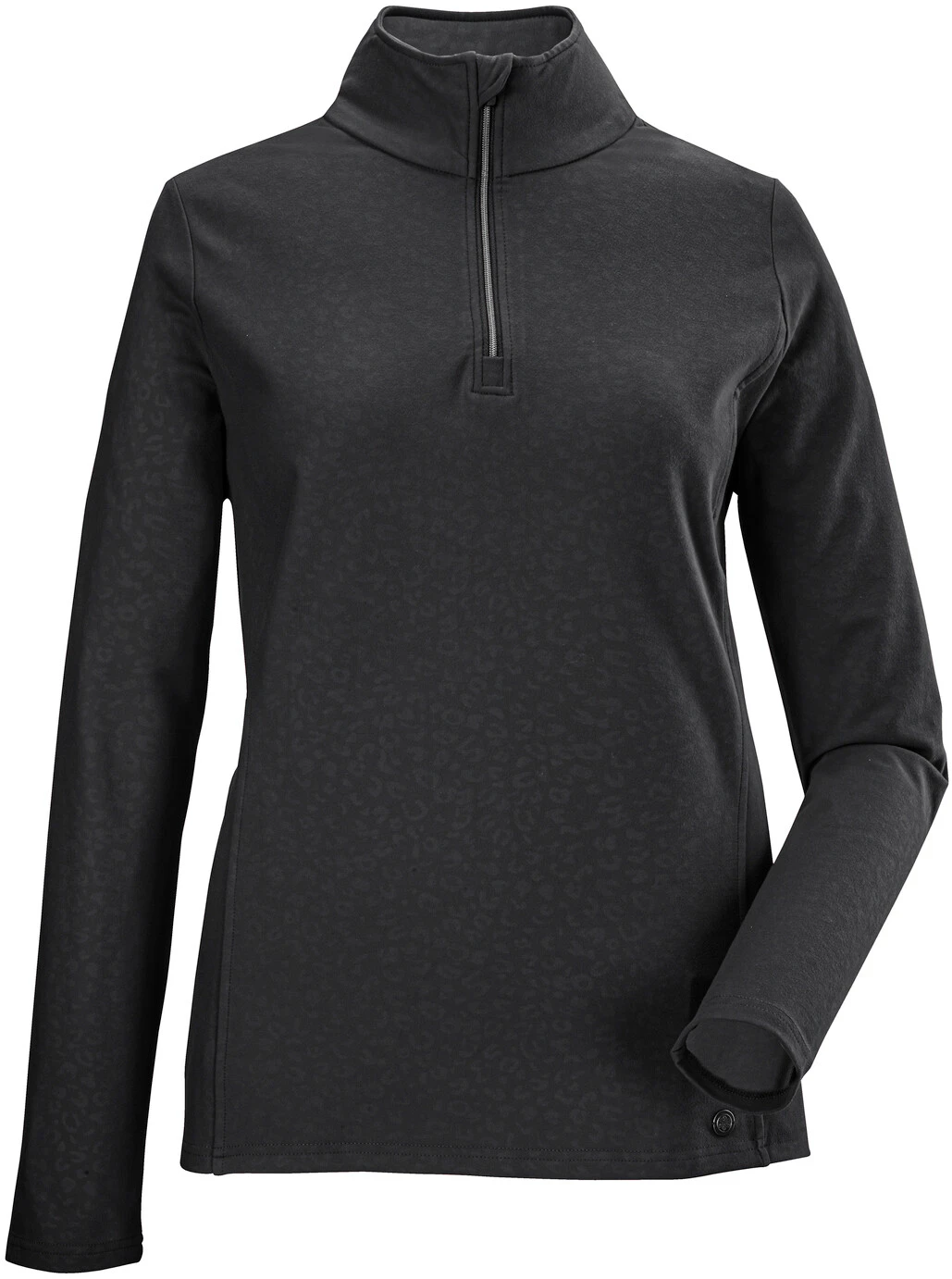 The killtec functional shirt with discreet leo print is ideal for winter sports. It is quick-drying and keeps you nice and warm in cold temperatures. The stand-up collar provides additional protection from the wind. The high stretch content ensures a good fit and pleasant wearing comfort. The zip on the collar and press studs on the waistband make it easy to put on and take off.