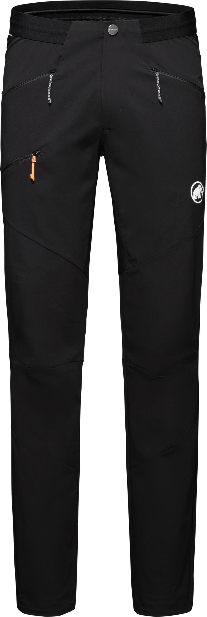 Pants that match your pace. The Aenergy Light soft shell pants are ideal in summer for mountaineering and climbing or for hiking in the mountains during seasonal transitions. They are made from a particularly lightweight and yet highly abrasion-resistant double-weave fabric. The water-repellent treatment is PFC-free. The pants are breathable, quick-drying and their elasticated properties allow freedom of movement. The waistband is elasticated and the drawstring ensures a perfect fit. The climbing harness-compatible pockets have zippers to make sure nothing gets lost. A drawstring allows you to ideally adjust the leg hems for a more streamlined fit, providing a clearer view of your foot placements when mountaineering and climbing. The Aenergy Light SO Pants: Mammut’s lightest softshell pants for mountain sports enthusiasts who like to move that little bit faster.