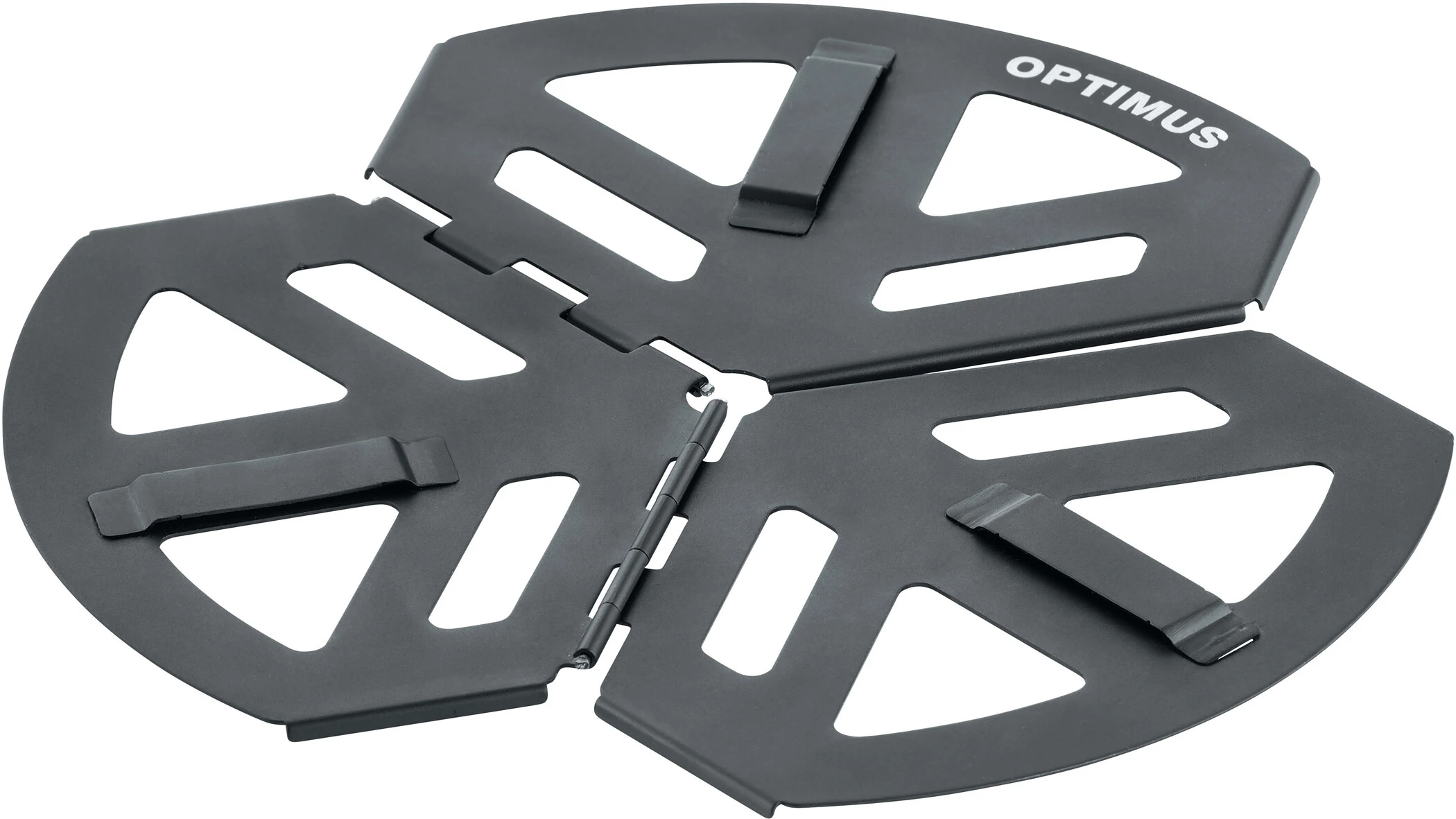 The Optimus burner support plate prevents the stove legs from sinking in on soft ground. It is very useful on snow, sand and gravel and has a durable anodised surface. The increased stability of the cooker ensures safe cooking. The support plate folds flat (to 8 mm) and has an extremely light weight of just 57 g. It can be attached to the feet of the stove. It can be attached to the feet of the cooker and can be stored in the storage bag of Optimus Polaris, Optimus Nova, Optimus Vega etc.