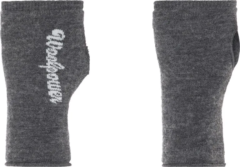 Wrist gaiter with thumb hole is made from circular knit fabric with terry loops on the inside. It has the Woolpower logo knitted in and is 18 cm long.