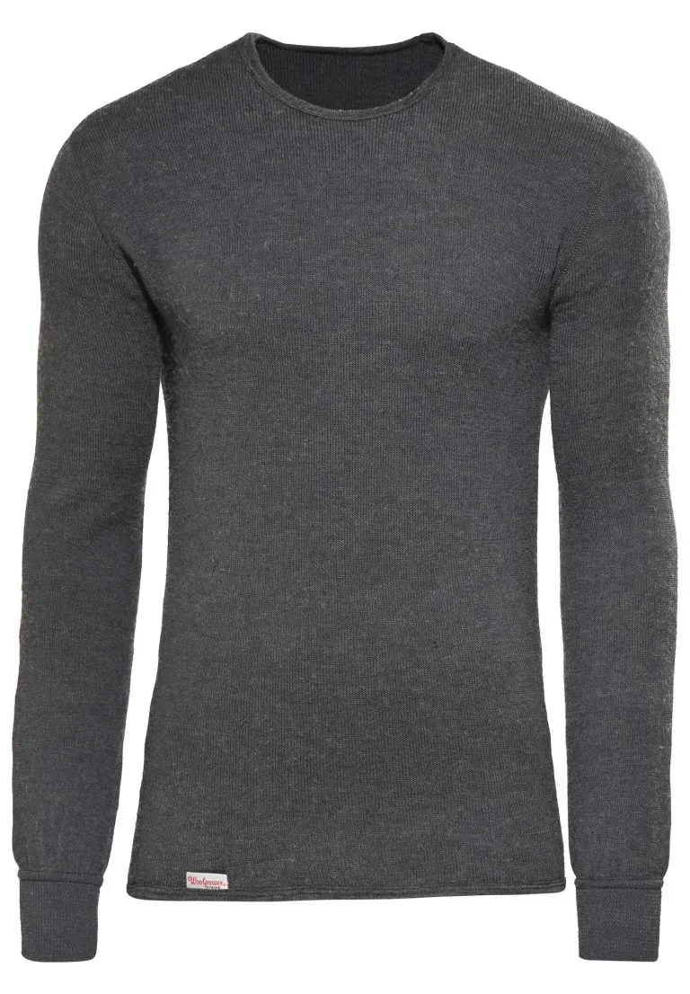 Long sleeve crewneck made of circular knit fabric and has no lengthwise seams. The back is longer to prevent gaps. Cuffs are knitted in.